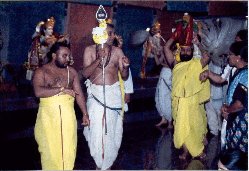 Kumbha Urvalam – Priest Srinivas Bhattar and Mr. Shanker seen in the front.